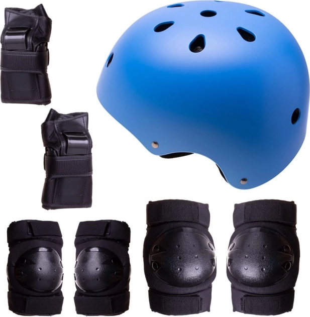 Hjelm + beskyttelsessæt til rulleskøjter, skateboard, cykel – blå-sort, M