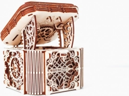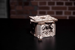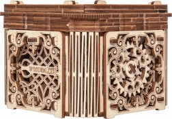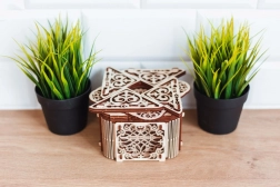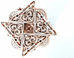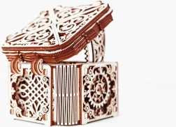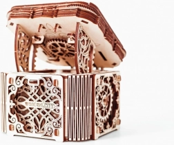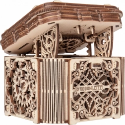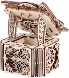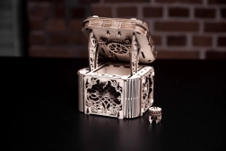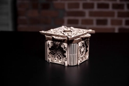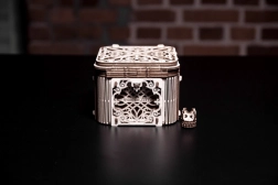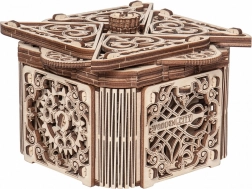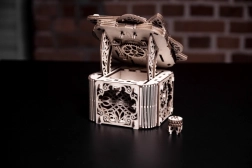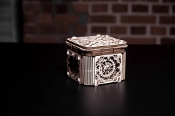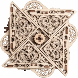 Denne træmekaniske boks er ikke kun et smukt dekorativt element, men også en udfordrende gåde. Du vil elske dens unikke design og de tilsyneladende komplekse mekanismer, som du skal knække for at åbne den.