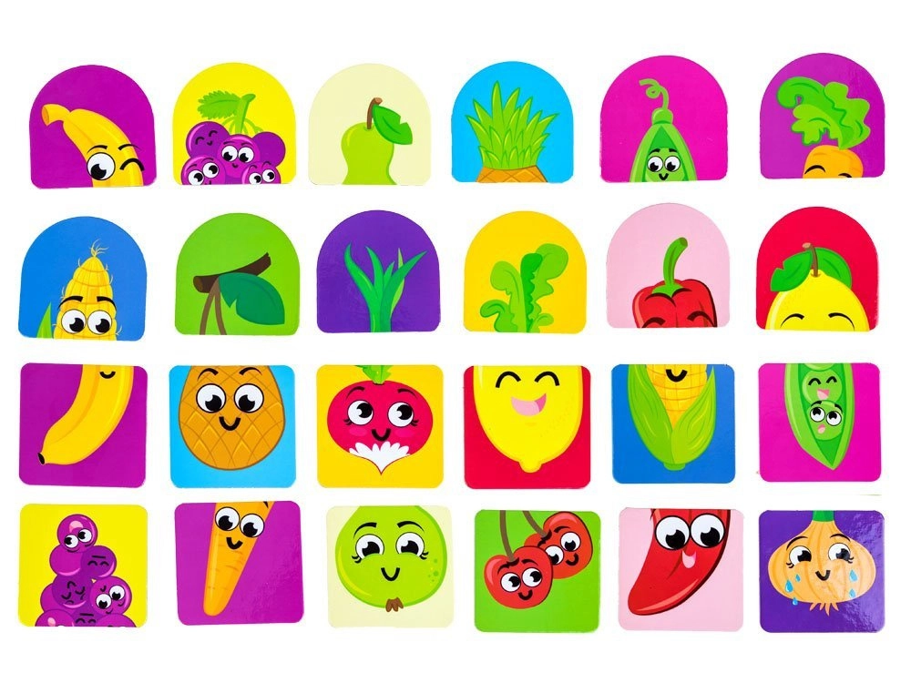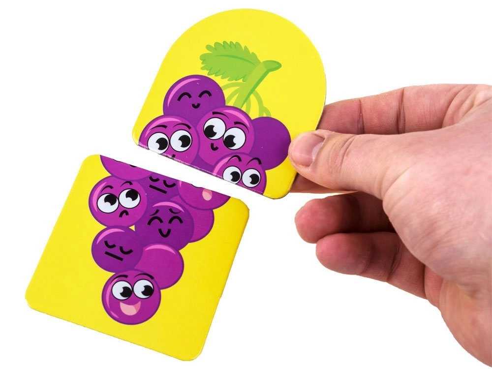 Et sjovt, lærerigt spil for de mindste, hvor børnene forbinder den “øvre” del med den “nedre” del. Med enkle illustrationer og muntre motiver af frugt og grøntsager udvikler de logisk tænkning, parvis sortering og iagttagelsesevne. De store brikker af solid pap er lette at holde og sikre for små hænder.