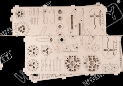 Byggesættet er lavet af kvalitets birkefinér og samles uden brug af lim eller værktøj. Dimensionerne på den samlede model er cirka 16,1 x 14 x 8,8 cm. Det vil blive en fantastisk gave til flyentusiaster og garanterer timers sjov og indsigt i mekaniske gear og tandhjul.