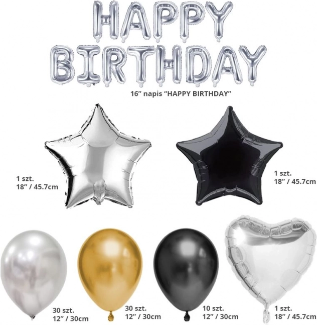 Sættet med fødselsdagsballoner er det ideelle valg til udsmykning af fødselsdagsfesten og giver arrangementet et originalt præg. Takket være disse balloner bliver begivenheden uforglemmelig ikke kun for hovedpersonen, men også for alle gæster. Sættet skaber en smuk baggrund til mindeværdige fotos.