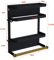 Praktisk dobbeltlaget magnetisk organisator til at holde orden i et mindre køkken. Ideel til opbevaring af krydderier og køkkenudstyr med øjeblikkelig adgang, som giver ekstra plads. Denne organisator er beregnet til montering på køleskabet takket være stærke magneter, der sikrer et fast greb selv ved høj belastning.