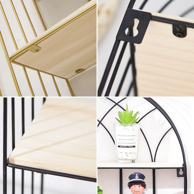 Denne dekorative sorte hylde med trådkonstruktion er det ideelle valg for dem, der vil forene funktionalitet med et elegant udseende. Det minimalistiske design fremhæver hjemmets karakter og giver praktisk plads til dine yndlingsgenstande.