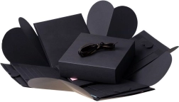 Overrask dine kære med en unik gave i form af en sort eksplosions gaveæske. Denne æske er en perfekt overraskelse til bryllup, Valentinsdag, forlovelse, fødselsdag eller enhver anden festlig lejlighed. I den mindste æske kan du lægge et smykke, et ur eller en anden lille gave. Pynt indersiden med fotos, hilsner eller hvad du end finder på, og gør denne gave uforglemmelig.