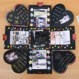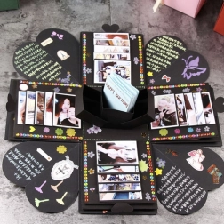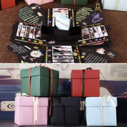 Den eksploderende gaveæske er en enestående gave til næsten enhver lejlighed og til hvem som helst. Ideel som gave til bryllup, Valentinsdag, forlovelse, fødselsdag, navnedag, til bedstemor, bedstefar, mor eller far. I den mindste æske kan du lægge den helt rigtige gave, for eksempel en ring, et ur eller et smykke. Indersiden kan du dekorere med fotos, hilsner og alt andet, du kan lide. Slip din kreative sjæl løs og giv en gave fra hjertet.