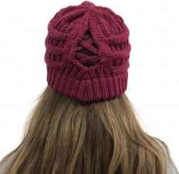 Vinterhue med hestehale – bordeaux