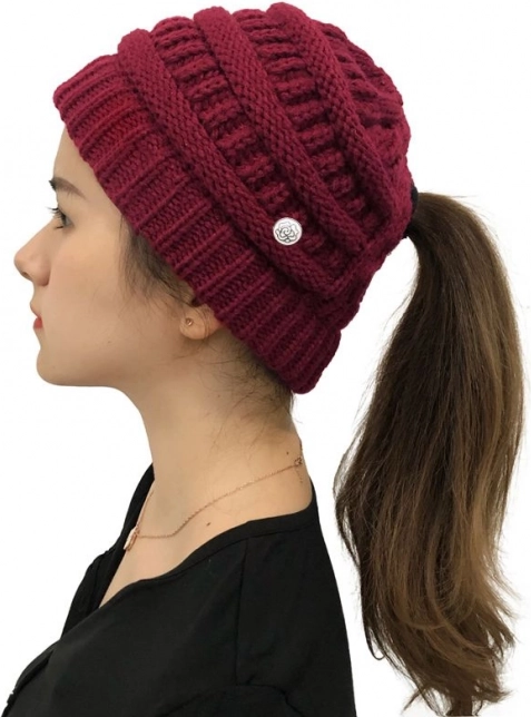 Praktisk, varm hue med en særlig åbning til hestehale. Selv under huen kan du vise dit smukke hår frem. Når du tager den af, er dit eget hår stadig ikke filtret.