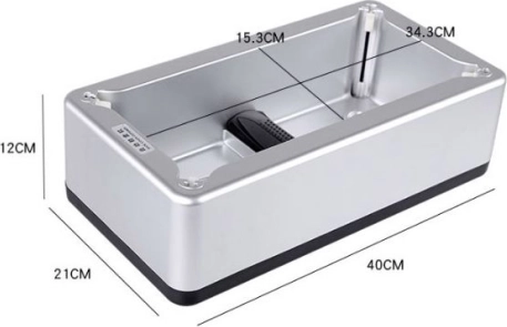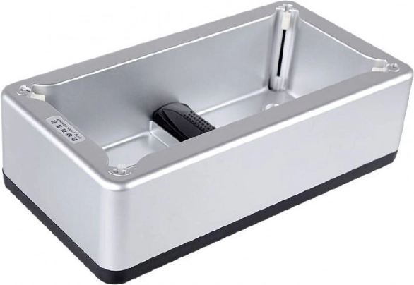 Det sølvfarvede design er ikke kun elegant, men også kompakt, hvilket muliggør placering af enheden i forskellige miljøer.