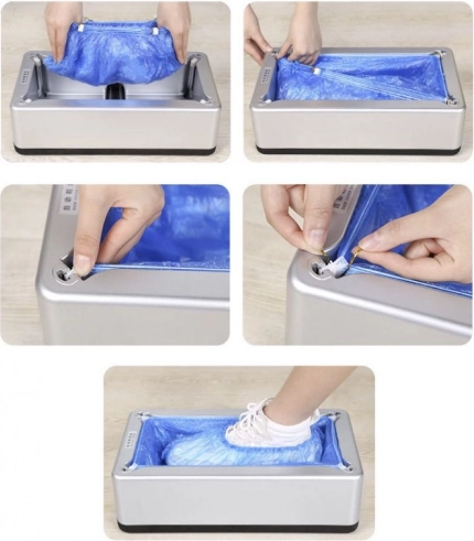 Dispenseren sikrer, at skoene dækkes uden berøring med hænderne, hvilket minimerer risikoen for kontaminering.