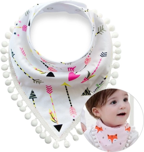 Det søde børnetørklæde med pomponer er et fantastisk halstilbehør, som også fungerer godt som hagesmæk for småbørn, der får tænder. Den komfortable lukning trykker ikke på barnet, og der er også en justerbar kant.