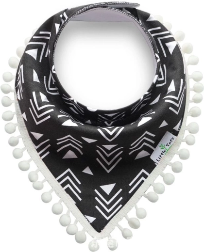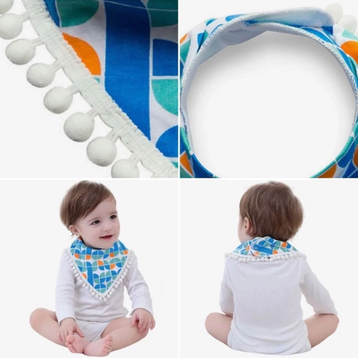 Det yndige bæresjal til børn med kvaster er et glimrende halstørklædetilbehør, som også fungerer godt som savlesmæk, når barnets tænder er på vej. Den behagelige lukning med trykknapper strammer ikke om barnets hals, og der er også en justerbar kant.