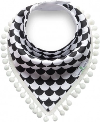 Børnetørklæde med pomponer – hvidt og sort mønster