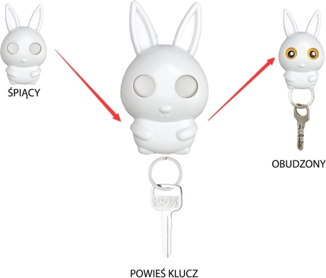 En nøgleholder, ideel til entréen, hvor du kan hænge dine nøgler, når du kommer hjem. Så snart du hænger nøglerne på, åbner kaninen øjnene, så du kan holde øje med dem. Med nøgleholderen monteret lige ved udgangen glemmer du aldrig dine nøgler igen – kaninens åbne øjne vil helt sikkert minde dig om dem.