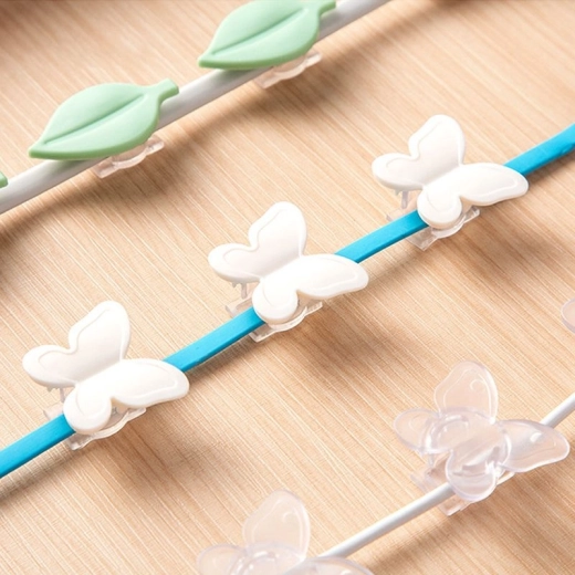 Den dekorative holder hjælper med at holde kabler og ledninger samlet ét sted. Den tager sig godt ud, når den sættes fast steder som vægge, natborde, tv-borde, skriveborde m.m. Kabel- og ledningsholdere kan fastgøres på stort set enhver overflade. Produktet har et originalt design – det er formet som en sommerfugl. Holderen har et fladt udskæringsspor, som passer til de fleste kabler og ledninger på markedet.
