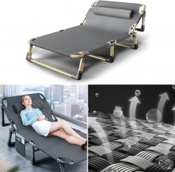 Den justerbare nakkestøtte med 4 trin gør det nemt at læse, slappe af og sove komfortabelt. Takket være 8 skridsikre fødder står sengen stabilt på forskellige gulve. Når den klappes sammen, har den kompakte mål, så du nemt kan opbevare den i skabet, bilen eller på kontoret.