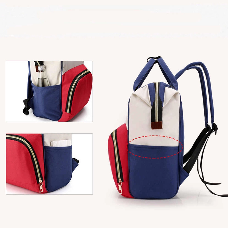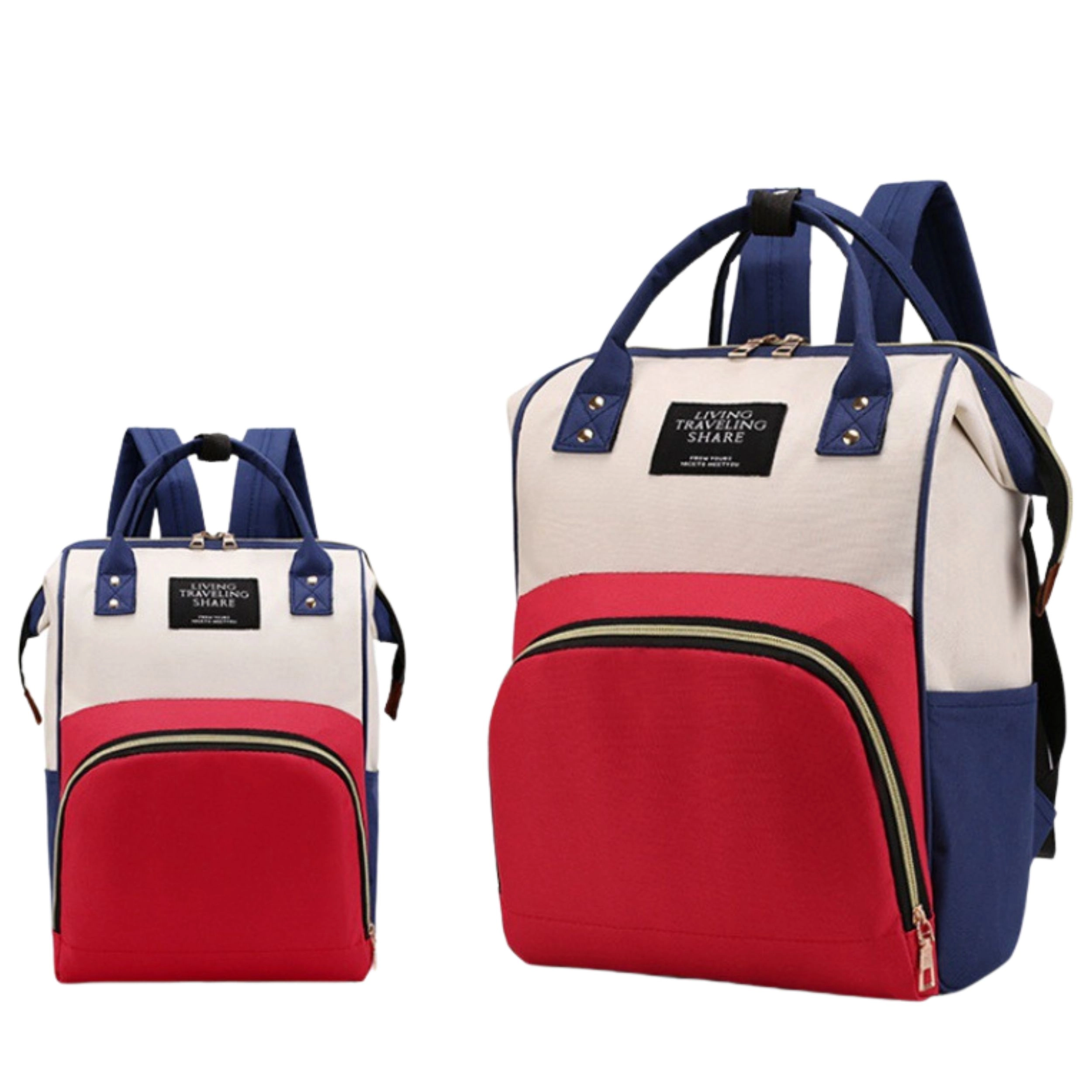En stilfuld og praktisk rygsæk til mødre i trikolore, der kombinerer komfort og organisering til hverdag. Den tilbyder termolommer til flasker, et bredt hovedrum med flere lommer, sideommer til nødvendigheder og mulighed for at bære i hånden, på ryggen samt fastgørelse på barnevogn.