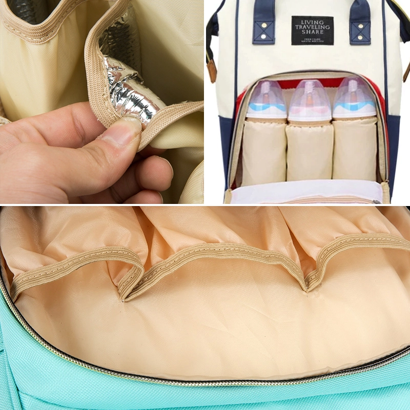 Praktiske termolommer hjælper med at holde drikke varme eller kolde, mens sidelommer er perfekte til vådservietter og andre småting. Øverste håndtag og polstrede skulderstropper giver behagelig bæring, og med muligheden for at fastgøre den til barnevognen har du hænderne fri.