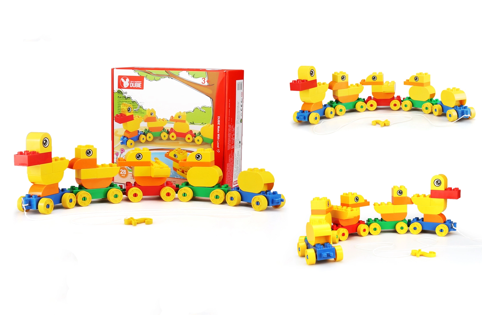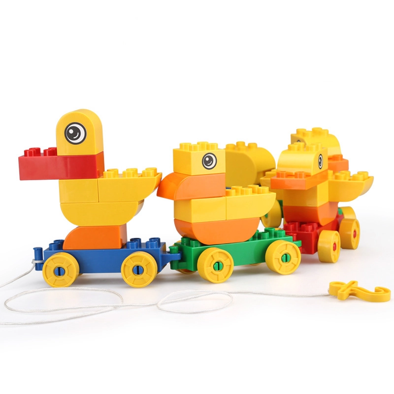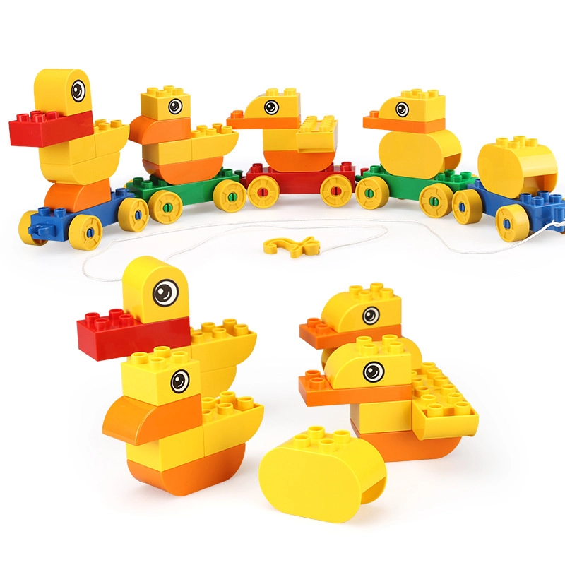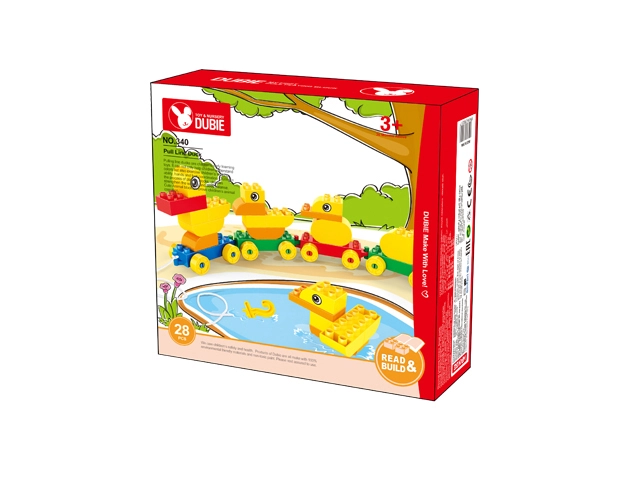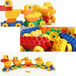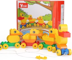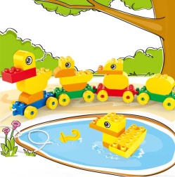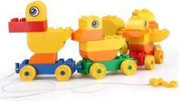 Dette farverige byggesæt lader børn samle en sød andefamilie og koble den til et tog, som takket være hjul og snor let kan trækkes. Legen udvikler manuel færdighed, rumlig forestillingsevne og logisk tænkning og fremmer samtidig selvstændig og kreativ leg.