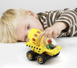 Ét sæt, fem muligheder: betonblandere og tipvogne i forskellige varianter til uendelige legescenarier.