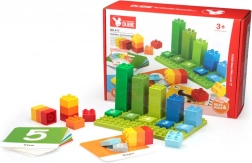 Store, robuste klodser ligger godt i hånden og er sikre for førskolebørn. Læringen sker gennem leg – børn bygger tårne efter tal, sorterer farver og træner hånd–øje-koordination.