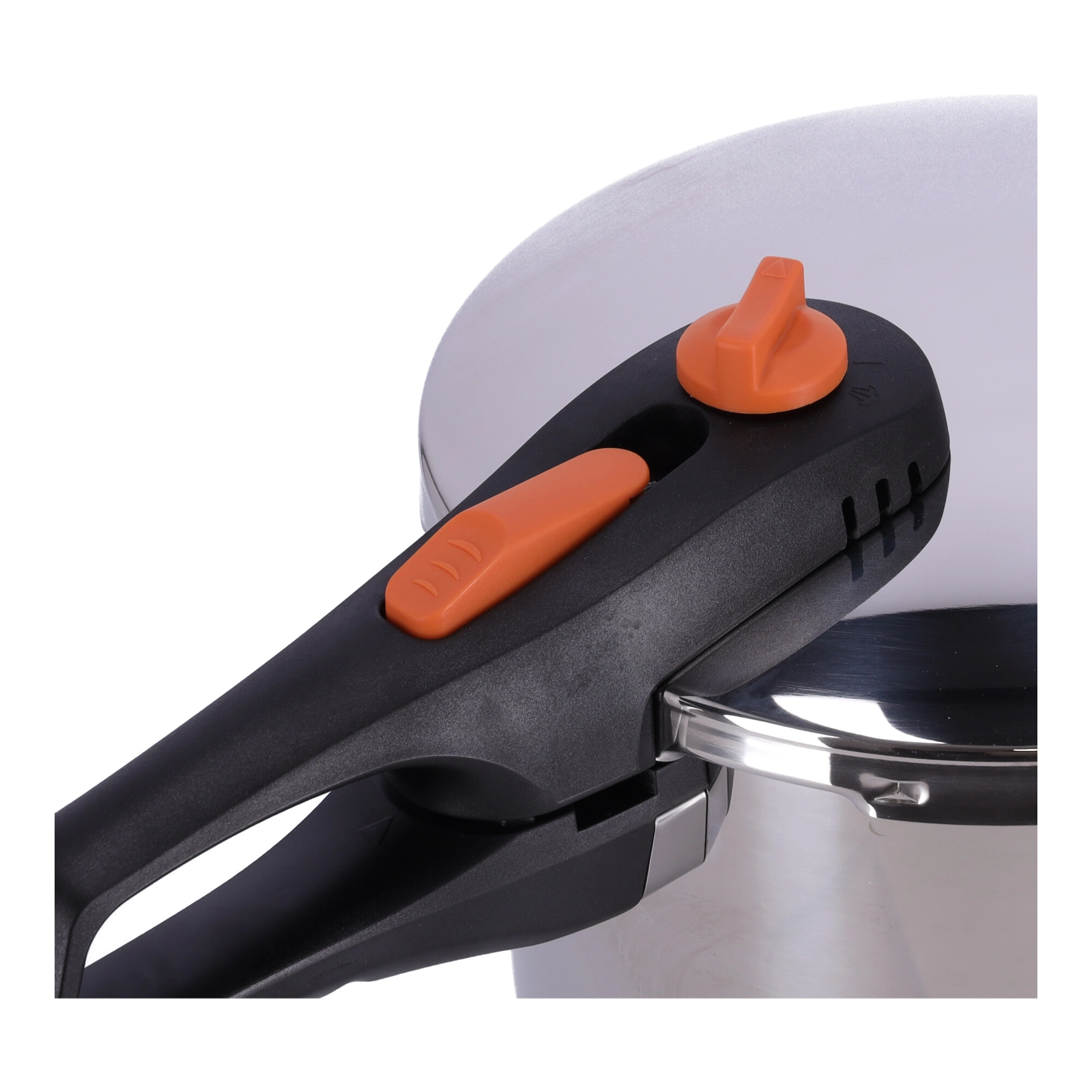 Solidt bajonetlåg, sikkerhedslås mod åbning under tryk og nem udluftning af damp for rolig og komfortabel madlavning hver dag.