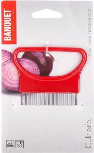 CULINARIA løgskærer er en praktisk hjælper til præcis og sikker skæring af løg. Mål: 10,7 x 7,8 cm, materiale plast / rustfrit stål.