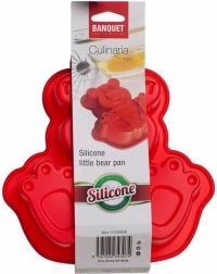 Silikoneform bamse CULINARIA Red, mål: 19,8 x 20,7 x 4,5 cm. Formen tåler høje temperaturer (op til 240 °C) og kan bruges i både elektrisk ovn og mikrobølgeovn. Den optager hverken smag eller lugt fra maden og er nem at vedligeholde (kan vaskes i opvaskemaskine). Silikone er et meget populært materiale, som takket være sine unikke egenskaber også har fundet anvendelse i køkkenet. Der fremstilles blandt andet forskellige typer bageforme, kageruller og udrulningsmåtter, dejskraber, pensler, diverse køkkenredskaber og mange andre produkter af silikone.