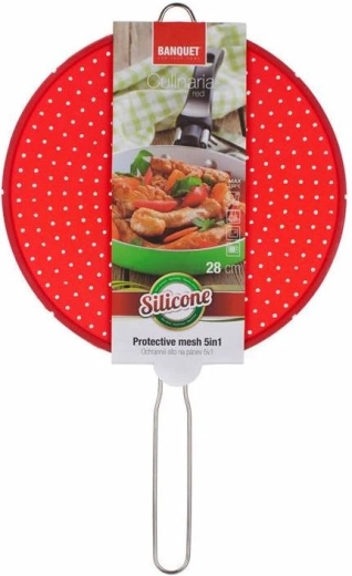 Vi præsenterer CULINARIA silikone beskyttelses-sprøjteskærm til pande, ideel til ethvert køkken. Dens perforerede design forhindrer effektivt oliesprøjt, mens damp kan slippe ud, hvilket sikrer renlighed og sikkerhed under madlavning. Skærmen er udstyret med et metalhåndtag for nem håndtering.
