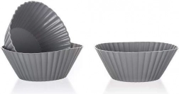 Sæt med 6 silikone-muffinforme fra Allegra, indeholder 3 grå og 3 cremefarvede forme i størrelsen 7,5 x 3 cm. De færdigbagte kager slipper let, og formene kan bruges igen og igen, hvilket er skånsomt for miljøet.