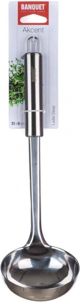 Slev BANQUET AKCENT er en pålidelig hjælper til servering af supper, saucer og bouillon. Det minimalistiske og funktionelle design sikrer et tidløst udseende og lang levetid. AKCENT-serien opfylder kravene fra professionelle, men er samtidig et fremragende valg til daglig brug i hjemmet.