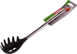 Accent spaghettoske 32 cm, materiale – nylon, håndtag i rustfrit stål 403, praktisk øje til ophængning. Redskabet ligger godt i hånden og kan vaskes i opvaskemaskine.