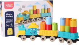 Klodssættet Tog med vogne er et fantastisk legetøj for børn, som giver dem mulighed for kreativt at bygge og udvikle deres færdigheder. Her er de vigtigste egenskaber ved sættet: