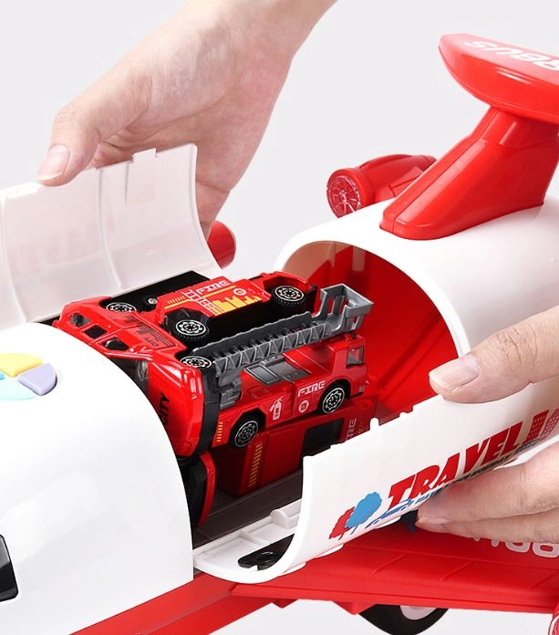 Oplev kreativ leg med det røde passagerfly, som rummer alle de medfølgende biler og sender dem afsted på et øjeblik. På taget finder du 4 knapper til lys- og lydeffekter, som gør hver mission endnu mere realistisk. Den åbnbare fuselage fungerer som praktisk opbevaringsplads, og den bageste affyrer muliggør lynhurtig udkørsel.