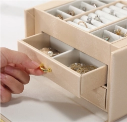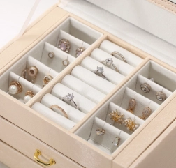 Varierede rum, skuffer og kroge holder øreringe, ringe, armbånd og halskæder pænt adskilt og altid lige ved hånden.