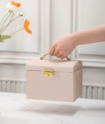 Den solide gyldne lukning og det praktiske håndtag gør transporten nem. Smykkerne forbliver i sikkerhed både hjemme og på rejser.