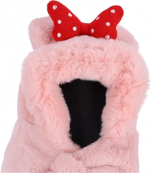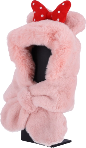 Børne plys hue med tørklæde til børn fra 1 til 8 år – lyserød med rød sløjfe