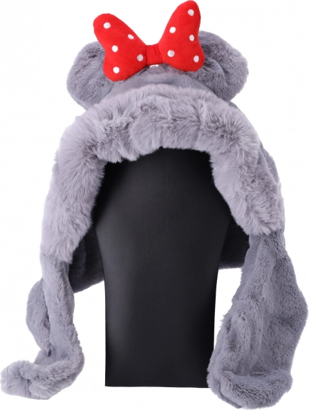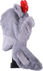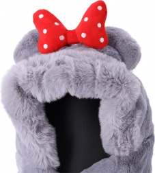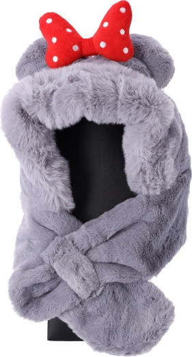 Plysbørns halstørklæde-hue til børn fra 1 til 8 år – grå med rød sløjfe