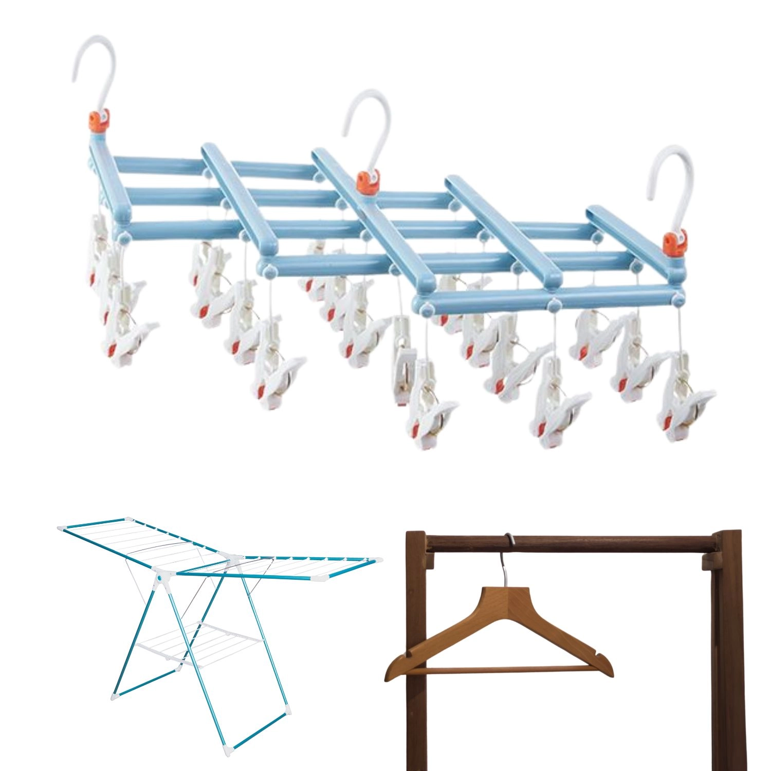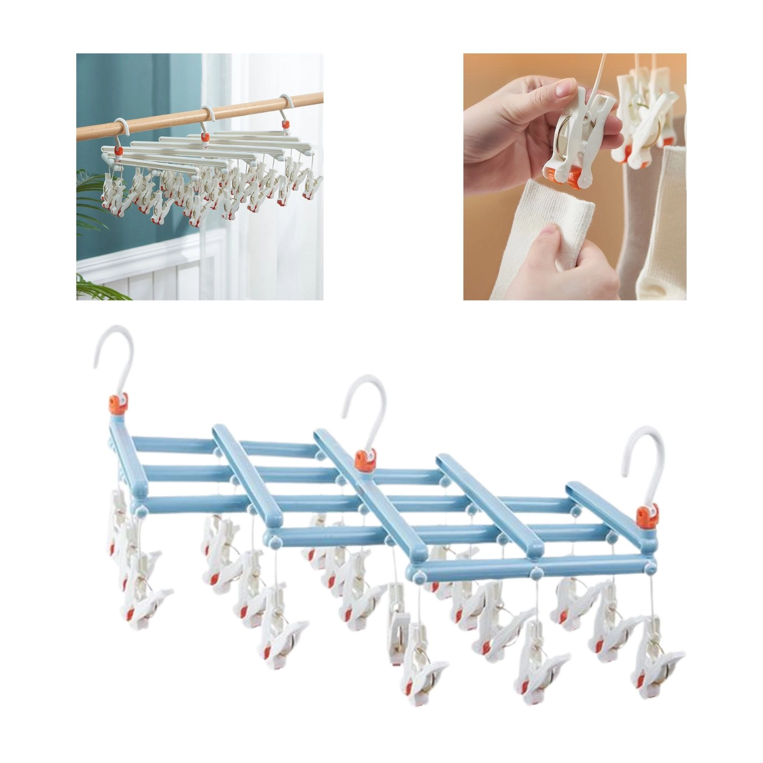 Tør strømper, undertøj og andre små tekstiler på én gang – skridsikre klemmer holder stoffet sikkert og sparer både tid og plads.