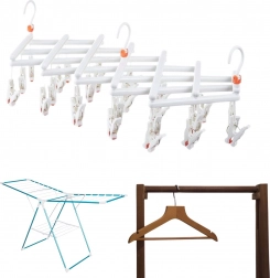 Den gennemtænkte konstruktion med pladsbesparende foldemekanisme sparer plads ved opbevaring og gør det nemt at tage med til sommerhus eller camping. Ergonomiske klemmer med skridsikker overflade beskytter materialet og forhindrer, at tøjet glider ud – selv i blæsevejr.