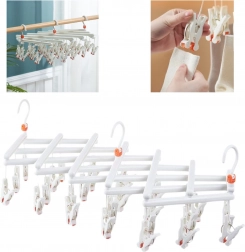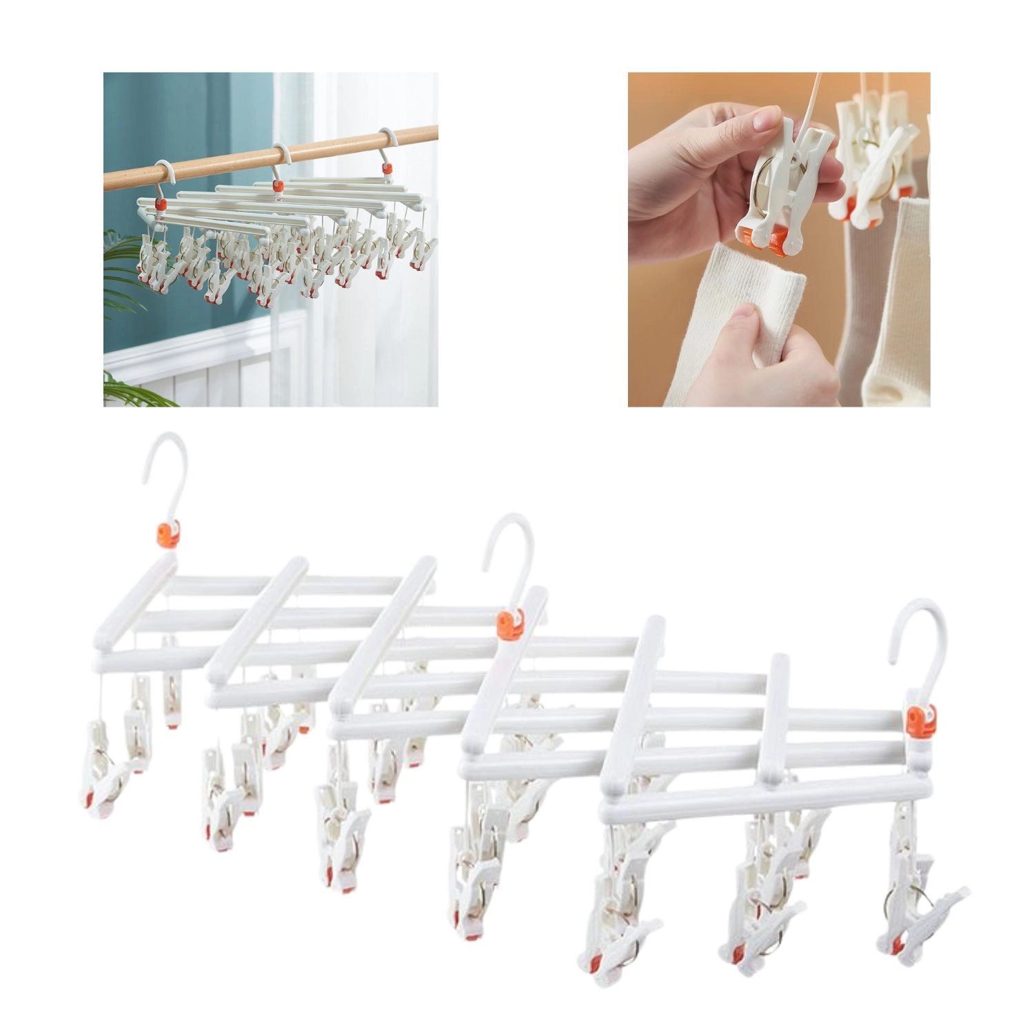 Nyd bekvem og hurtig tørring af småt tøj. Dette sammenklappelige tørrestativ med 29 stærke klemmer giver stabil fastgørelse, og takket være den roterende krog med lås kan det hænges næsten hvor som helst – på en stang, snor, stativ eller altan. Den holdbare, hurtigtørrende plast er velegnet til daglig brug både indendørs og udendørs.
