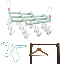 Praktisk og robust sammenklappelig tørrebøjle med 14 klemmer sparer plads og sikrer hurtig tørring af småt tøj. Ideel til sokker, undertøj og accessories, med dobbelte kroge for stabil ophængning. Har sammenklappelig konstruktion, roterende krog med lås og ergonomiske klemmer for sikker fastgørelse.