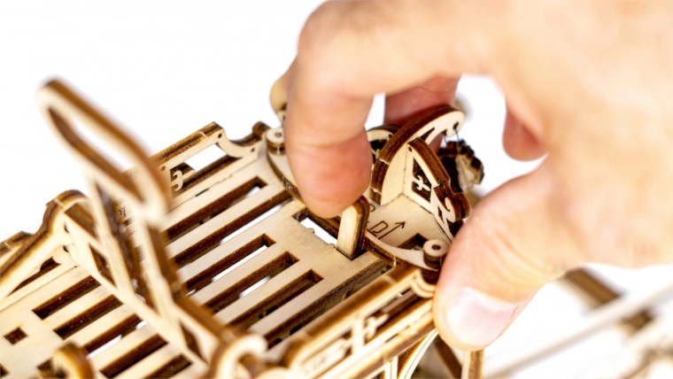Laserudskårne dele i birkekrydsfiner passer præcist sammen. Følg blot den illustrerede vejledning og nyd byggeriet.