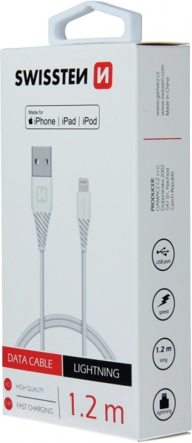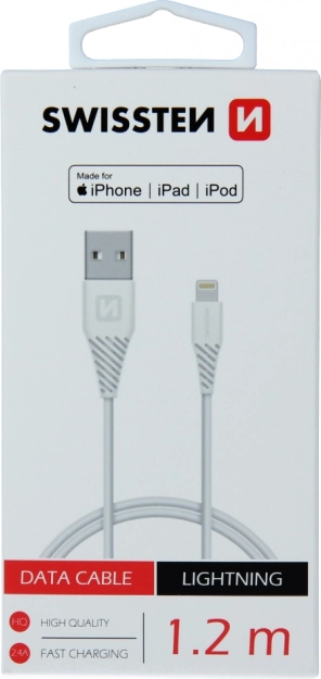 Swissten USB/LIGHTNING TPE-datakabel med MFI-certificering, længde 1,2 m. Pakket i Swissten detailpakning.