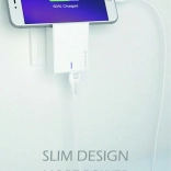 Slankt og kompakt design af opladeren, ideelt til brug på farten.