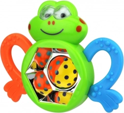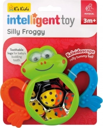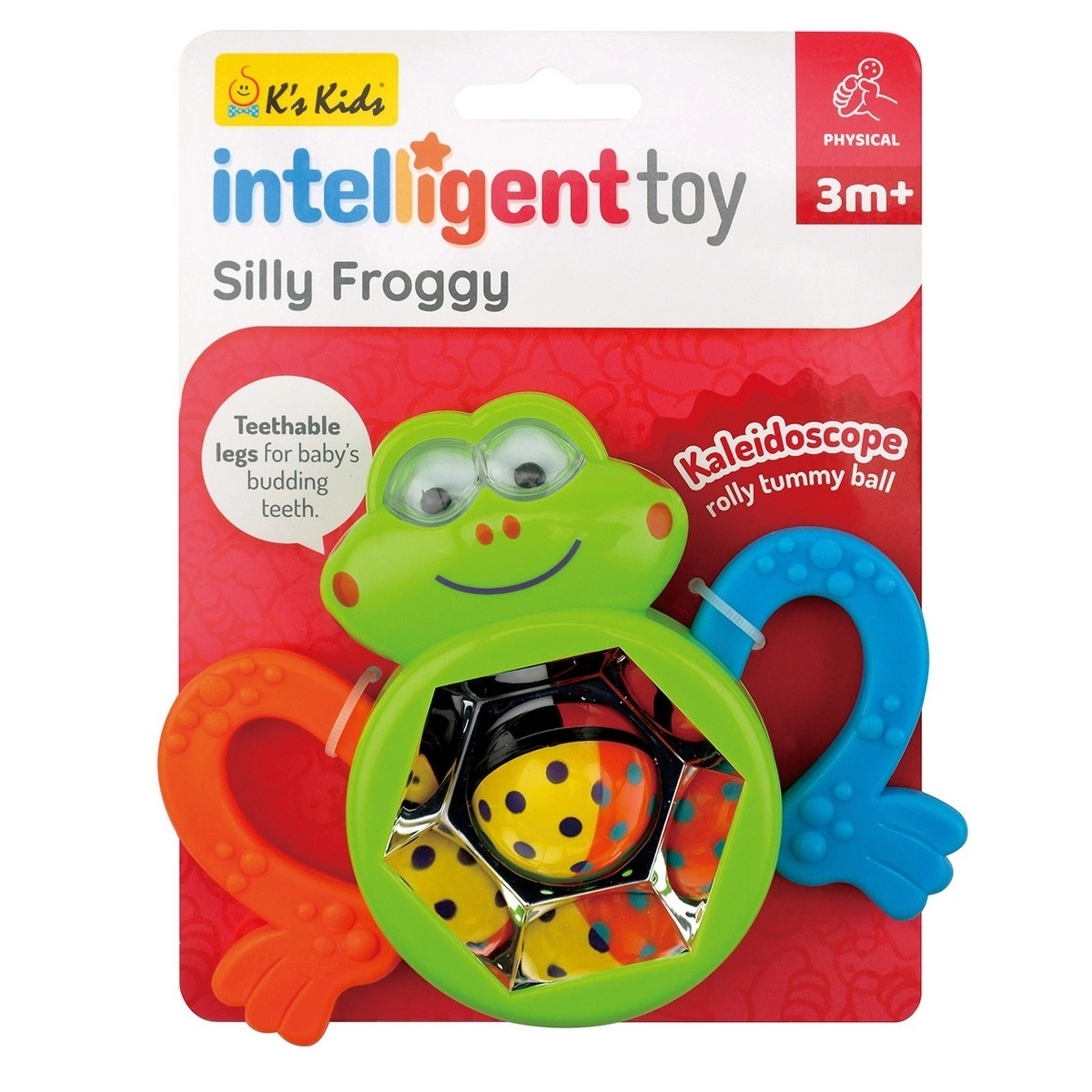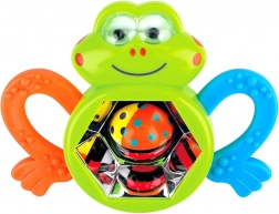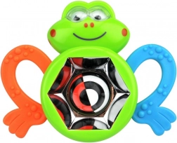 Denne farverige frø fanger opmærksomheden hos børn fra 3 måneder med sine kontrastfarver, sikre teksturer og den sjove roterende spejlkugle, der rasler ved bevægelse. De ergonomiske “poter” fungerer som bidering, og takket være skridsikre mønstre er den nem at holde selv for små hænder.
