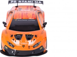 Denne detaljerede RC-model imponerer med realistisk udseende, officiel licens og fremragende køreegenskaber. Den robuste konstruktion og præcise karrosseri gengiver trofast HURACÁN GT3-raceren.