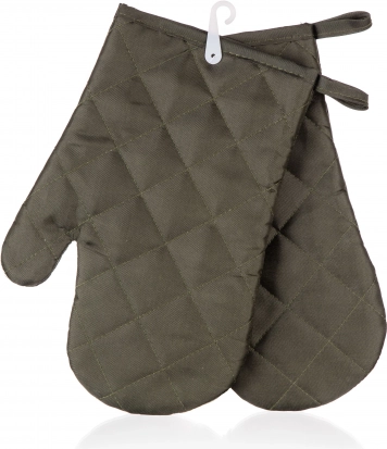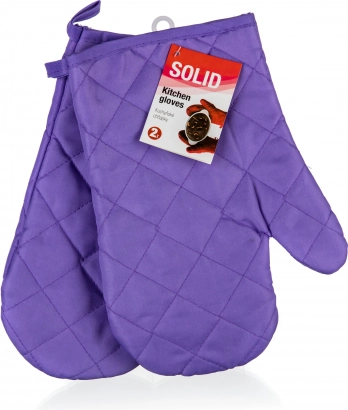 Sættet med køkkenhandsker 2 stk SOLID er fremstillet af 100% polyester, materialekvalitet: 55 g/m², ensfarvet udførelse med laminerede detaljer.