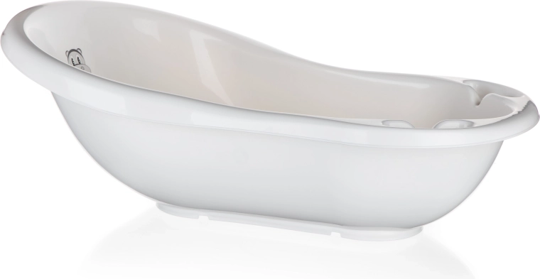Dette hvide babybadekar på 84 cm er designet til komfort for både baby og forældre. Den ergonomiske form med afrundede linjer giver støtte under badningen, mens det farverige junglemotiv gør hver badestund hyggelig.