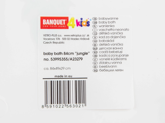 Praktisk babybadekar på 84 cm med legesygt motiv af jungledyr giver sikker og behagelig badning fra fødslen. Let og holdbar polypropylen, ergonomiske former og integrerede opbevaringsfordybninger gør den daglige pleje nemmere. Nemt at håndtere, rengøre og desinficere for maksimal hygiejne.