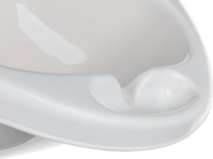 Afrundede linjer og øget rygstøtte hjælper med at holde barnet i en stabil og behagelig stilling under badet.